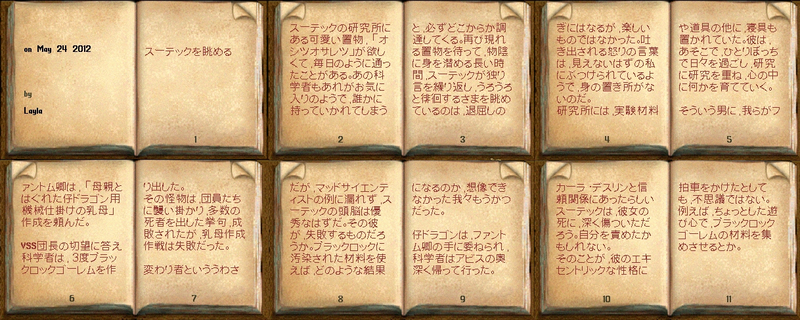 ・ブラックロックゴーレムの謎 師スーテックは三度にわたり、機械生命体の作成に失敗した。しかしここはむしろ失敗したと言うより、三度にわたり合計7体ものブラックロックゴーレムが、いともたやすく産み出されてしまったとことをむしろ懸念すべきであろう。「ドラゴンのフェロモン」自体は入手が困難であることは我々が身をもって実証済みであるが、代替品をもってしていつこの危険な生物が量産される危険がないとは言えない。かねてより我が銀蛇自警団にはスパイが潜んでいると噂されており、一瞬いやな考えが頭をよぎったが、当のオークも被害を被ったようだ。 - バカな人間たち。生き物を作ろうだなんて、おこがましいにもほどがあるわ!kraltch(オークの侮辱語で病気のモンバット)め!!(Lio Leia団員)
